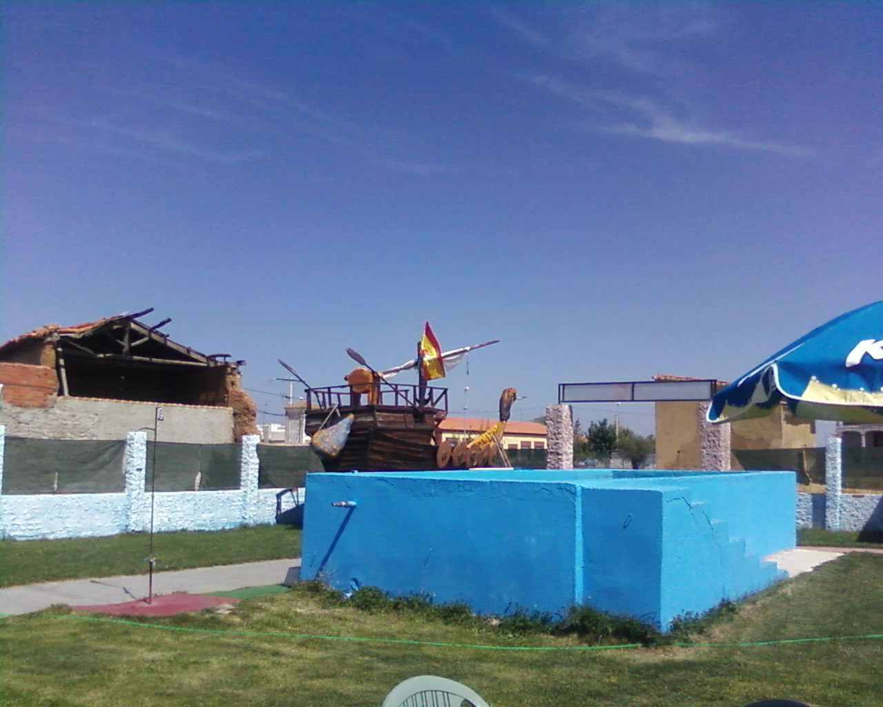 Endlich gibt es mal wieder eine richtig schicke staatliche Herberge. Mehrere kleine Steinhaeuschen bilden einen gemuetlichen Komplex an einem Fluss. Um mal eine schnarchfreie Nacht zu haben, beschliesse ich zu zelten. Es ist einfach malerisch.