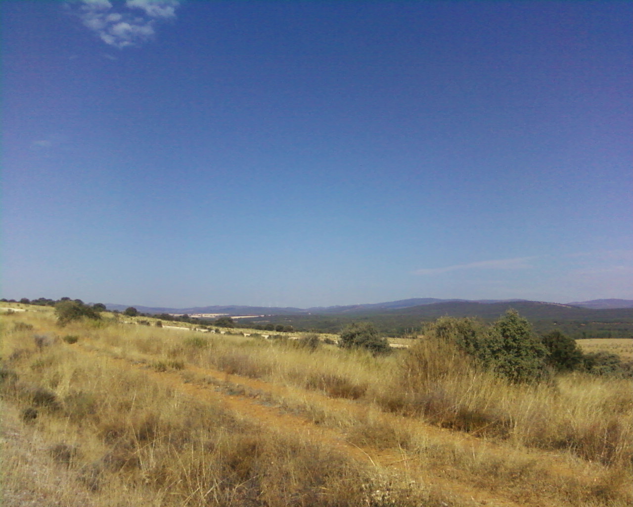 Ein aelteres Ehepaar aus Deutschland hat noch einen Kaffee am Morgen fuer mich uebrig, scheint ein Glueckstag zu werden. Unterwegs treffe ich einen ebenfalls aus Deutschland stammenden Elektro-Freggle. Der ist eigentlich deutlich schneller unterwegs als ich, aber er will ein Stueck mit mir gehen und das fuehrt zu einem netten Gespraech. Er hat eine aehnliche Vergangenheit, wie die meine, was die Musik angeht. Es ist toll, auch mal wieder ueber solche Sachen zu reden. Die Gegend und so sind heute nicht so berauschend, gut, dann gibt es mal ein Bild von mir.