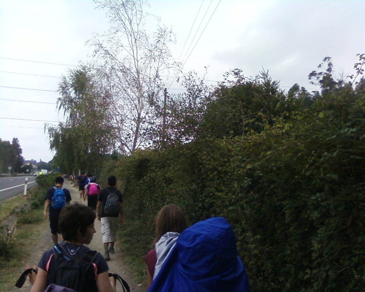 Man kann meisst deutlich die neuen Hasen von den alten Hasen unterscheiden und es finden auch kaum Mixprozesse statt. Auch hier hat sich Reif geirrt, denn die neuen Pilger haben oft nur sehr kleine Rucksaecke, wenn ueberhaupt einen.