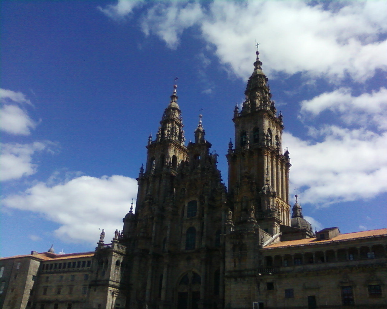 Ich bin den Traenen nahe und werde von einem gewaltigen Gefuehlsmischmasch erfasst, der mich den Rest des Tages begleiten wird. Ich bin einfach unglaublich gluecklich. Zunaechst geht es fuer mich nun durch die heilge Pforte, welche ja nur im heiligen Jahr geoeffnet ist. Ich umarme den Apostel und spreche meinen Wunsch. Man hat zwei Wuensche frei beim Apostel, wenn man nach Santiago gepilgert ist. Ich habe aber nur einen, na ja. Danach besuche ich die Pilgermesse in der Kathdrale. Sie ist tatsaechlich sehr schoen und beruehrend. Auch das Botafumeiro wird geschwungen. Ein grosses Weihrauchfass, dass in grossem Bogen durch das ganze Kirchenschiff schwingt, soll mal gegen den Geruch der Pilger eingesetzt worden sein. Es ist schon beeindruckend. Schliesslich holle ich mir nach doch laengerer Wartezeit meine Compostela und beschliesse damit meinen Weg nach Santiago de Compostela.